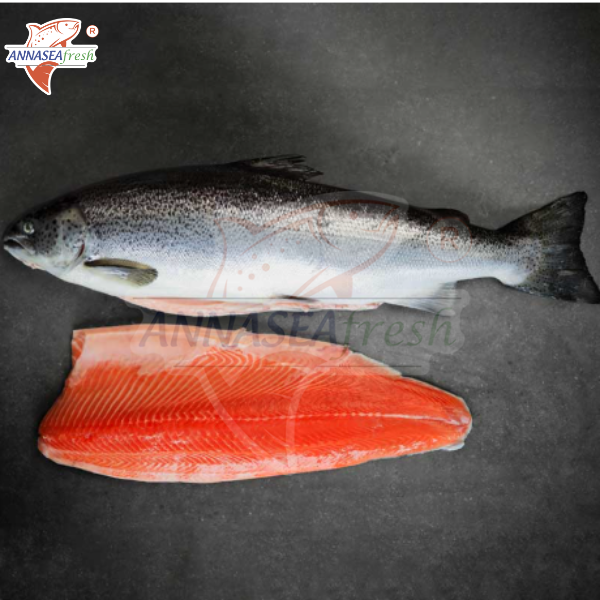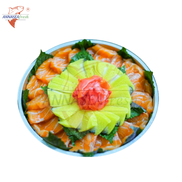 Cá hồi được tuyển chọn từ nguồn cá hồi nhập khẩu Mỹ, đạt tiêu chuẩn dùng cho sashimi. Phần phi lê được xử lý sạch, cắt sashimi đều tay, thớ thịt mịn, màu cam tươi đẹp, béo ngậy tự nhiên, không tanh, giữ trọn độ ẩm và vị ngọt đặc trưng của cá hồi tươi.
