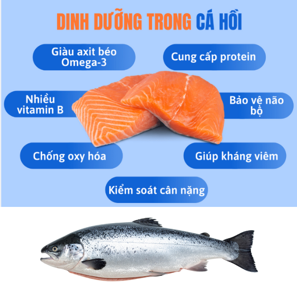 Cá hồi: giàu Omega-3, protein, vitamin B12, tốt cho tim mạch và não bộ