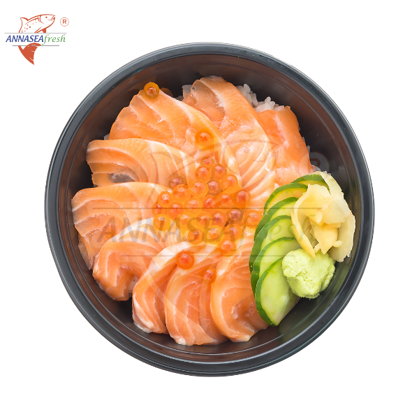 Cá hồi được tuyển chọn kỹ lưỡng từ nguồn cá hồi nhập khẩu, đạt tiêu chuẩn dùng cho sashimi. Phần phi lê grade A có màu cam tươi đẹp, thớ thịt mịn, được cắt lát đều tay với độ dày vừa ăn.